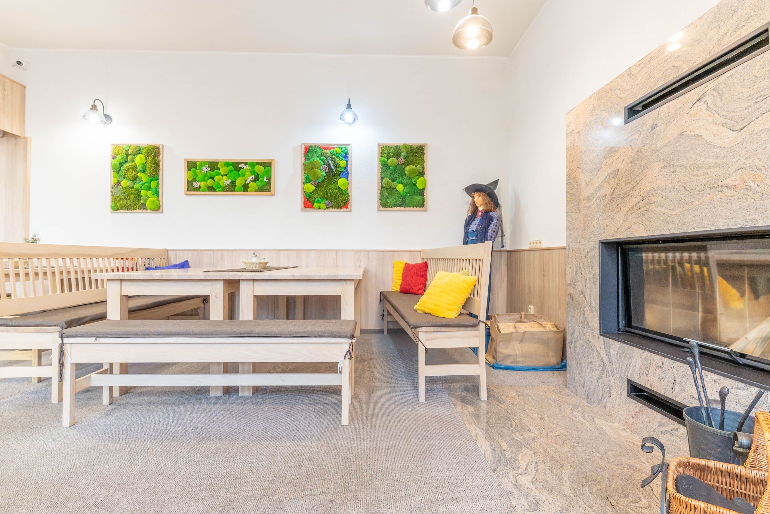 Restaurace s odděleným salónkem nabízí až 75 míst, venkovní posezení s grilováním až 96 míst
